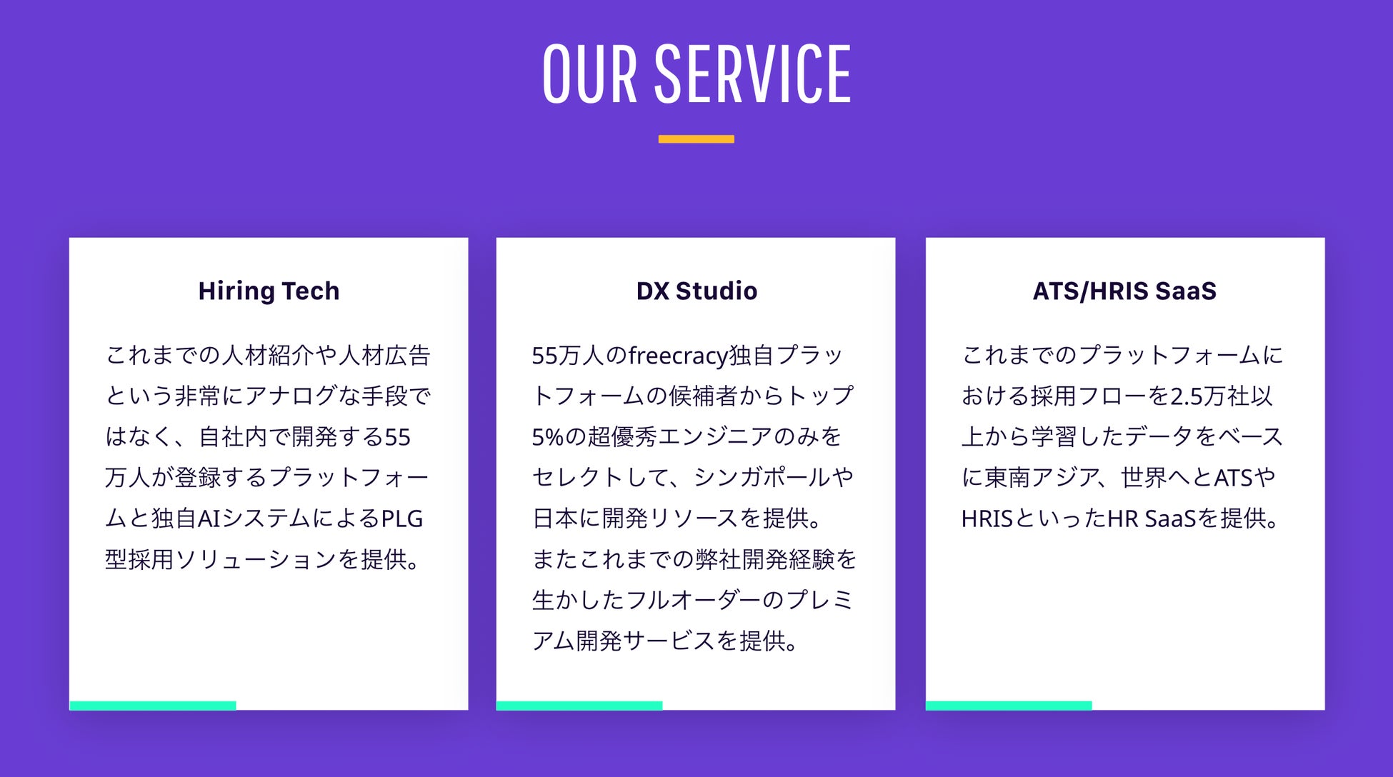 freecracyは今後世界において、これまでの55万人、2万5000社の学習から得られた知見をベースとして、IT企業を中心とした企業の方々が利用しやすく、圧倒的に生産性を向上させることができるATSやHRIS(Human Resource Information System: All in Oneの総合人事管理ツール)などのHR SaaSを提供します。またそこから吸い上げられたアクティブデータから企業様それぞれの採用状況やペインに合った人材を人材プラットフォームからAIがスクリーニングし、ラボ型開発や人材紹介など形を問わず、エンジニアリソースをあらゆる形で提供するグローバルエンジニアリソースサービスを提供するこれまでにないHRTech企業となります。