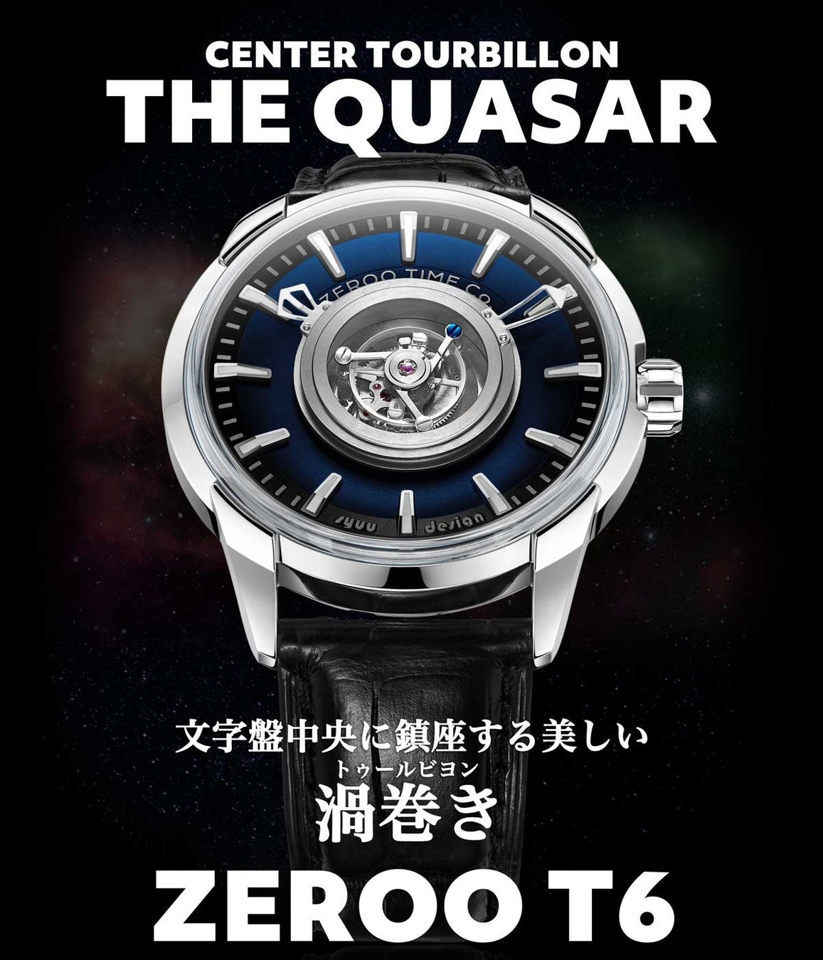 ZEROOから新作腕時計が発表となります。トゥールビヨンにこだわり商品開発をおこなっているゼロタイム株式会社よりトゥールビヨン第六弾となるZEROO T6 CENTER TOURBILLON THE QUASERがリリース。