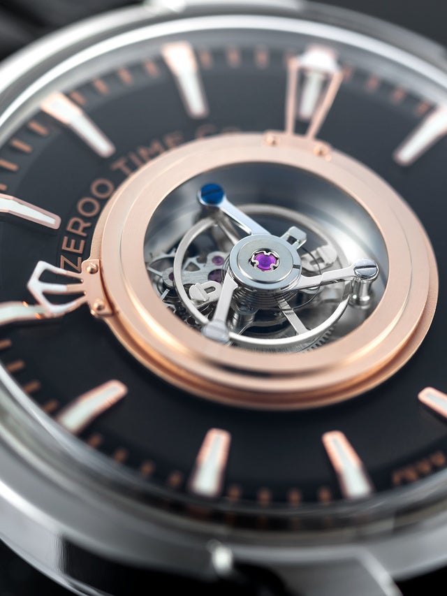 文字盤の中央に新デザインのキャリッジを鎮座させたセンター・トゥールビヨンZEROO T6。トゥールビヨンにこだわり製品を開発してきたゼロタイム株式会社が発表する第六弾のトゥールビヨンモデルです。