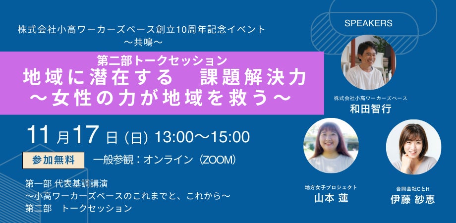 株式会社小高ワーカーズベース創立10周年記念イベント〜共鳴〜を11月17日(日)に開催いたします。一般の方はオンライン(ZOOM)で無料視聴が可能です。