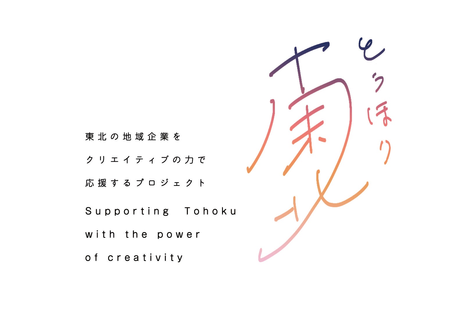 「とうほク 東北の地域企業をクリエイティブの力で応援するプロジェクト」は、コンサルタントが持つ論理思考力とクリエイターが持つデザイン思考力を融合させた化学反応により革新的な解決策の提供を目指します。また、期間限定のプロモーションなどによる一時的な効果創出に留まらず、連続的なイノベーションを通じた支援先企業の持続的な成長、中長期的な発展を目標としています。