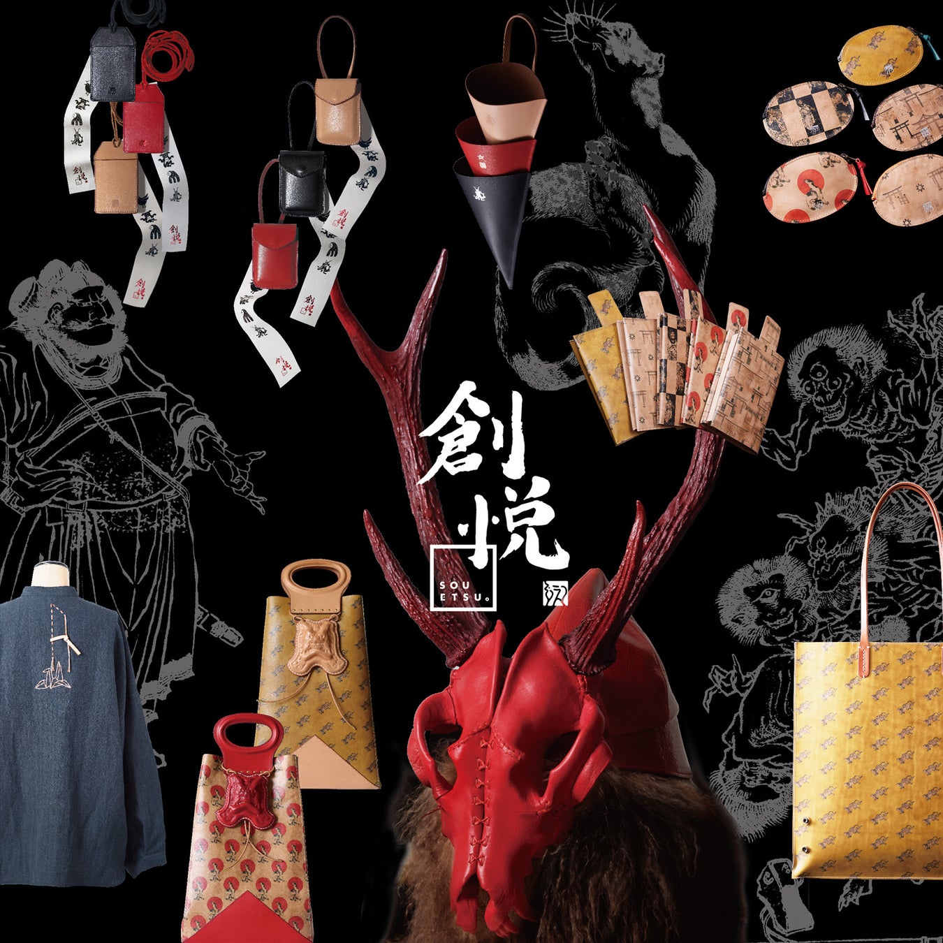 ANNASUIやgentenを手掛ける株式会社クイーポのオリジナルブランドであり、日本の皮革製品のPRを推進する日本皮革デザイン促進委員会が企画している。「環境と文化を尊ぶ」を掲げる創悦では、SDGSの観点から手馴染みがよく、かつ耐久力に優れた素 材として植物性タンニンで鞣された牛革を主に使用。長く使え、時と共に味わいを増す、経年変化が楽しめ“気心の知れた友”となり得るもモノづくりをしている。日本を代表する浮世絵師「葛飾北斎」 をテーマとしたナチュラルレザーのバッグや帽子、小物を中心に展開し、イタリア・フィレンツェやフランス・パリ、中国・上海、タイ・バンコク、台湾・台北、国内では羽田空港、梅田阪急コトコト 1-1 などで、イベントを開催している。