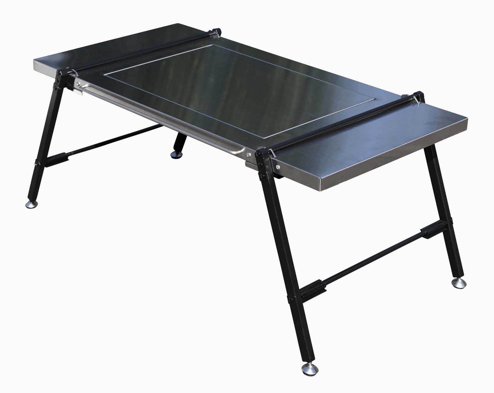 ・「SOLOIST HOMURA」 はもちろん、コンパクトタイプの焚火台やBBQコンロを快適に使える耐熱ステンレステーブル。