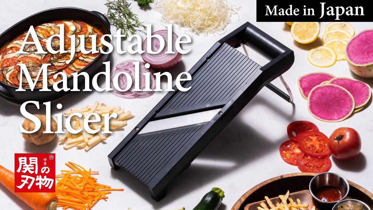 ダイヤル式で簡単に厚み調整可能!切れ味抜群「関の刃物」のスライス刃と2mm・6mm幅の千切り刃で1台3役のマルチスライサーが新発売