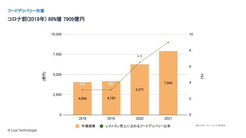 今後のニューノーマル時代ではフードデリバリーの需要はさらに拡大し、約10兆円規模(※1)の市場になるとの予測も出ております。