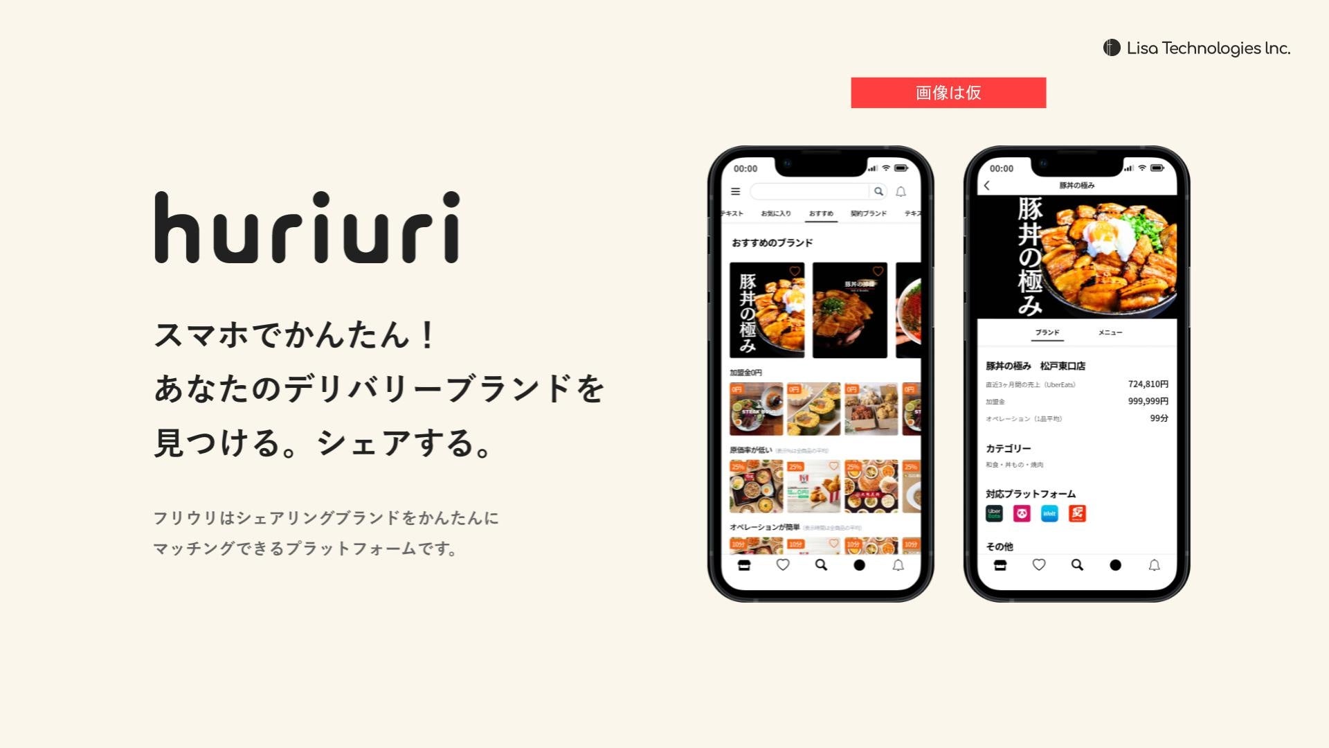 飲食店が運営するフードデリバリーの運用支援を行うLisa Technologies株式会社(本社:東京都中央区、リサテクノロジーズ 代表取締役CEO:西村 龍紀)は、フードデリバリーブランドをカンタンに見つけ、シェアすることができるフランチャイズ(以下、FC)マッチングプラットフォーム『huriuri(フリウリ)』の事前登録受付を開始しました。サービスのβ版リリースは近日予定しており、実績のあるフードデリバリーブランドをお持ちのFC本部さんと加盟見込みユーザーさんのマッチングを行います。