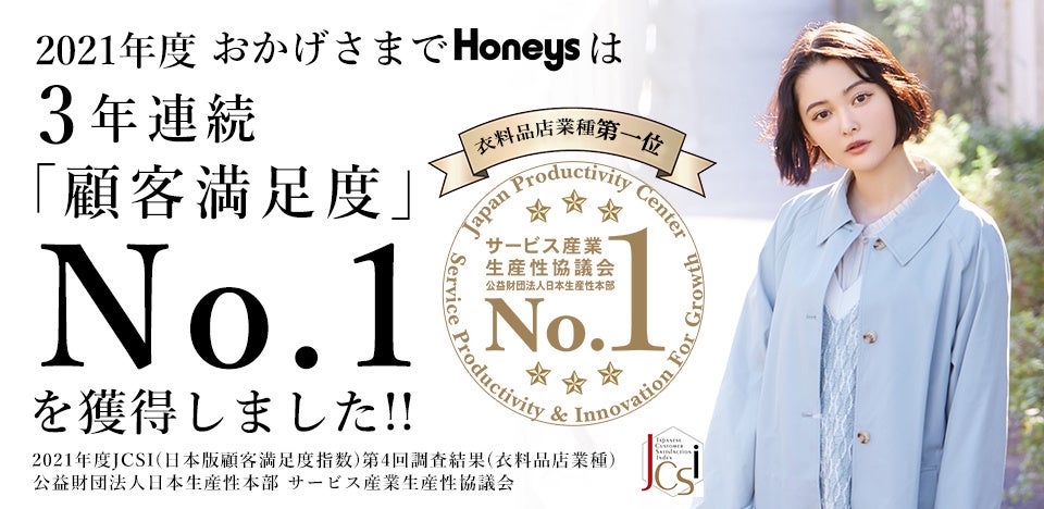 この度、株式会社ハニーズホールディングスが展開するレディスファッション「ハニーズ」は、サービス産業生産性協議会(公益財団法人日本生産性本部)が実施した「2021年度JCSI (日本版顧客満足度指数)」の衣料品店業種において、顧客満足度 第1位の評価をいただきました。