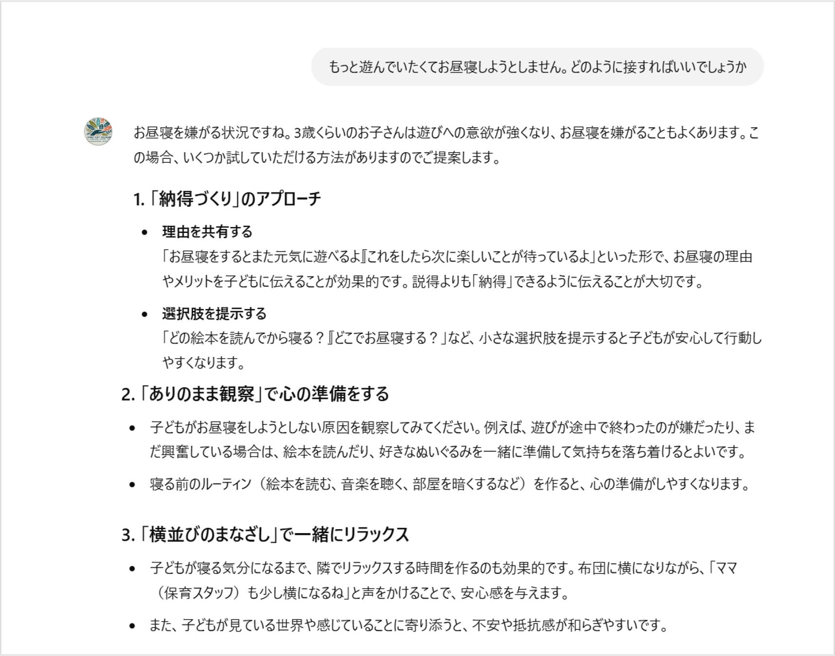 特定非営利活動法人ノーベル(大阪市中央区 代表理事:長谷亜希 以下、ノーベル)は、生成AIを活用して、訪問保育者が学び・つながるためのプラットフォームを開発。このたび訪問保育者向け学びのプラットフォーム「ノーベル先輩(仮称)」が完成しました。「ノーベル先輩(仮称)」は、保育現場での不安や課題を保育者自らが質問・相談し、ヒントを得てすぐに実践につなげられる支援ツールです。