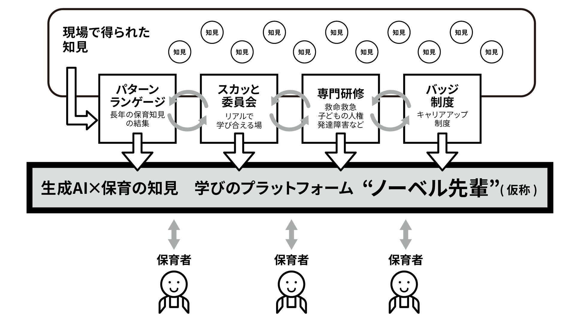 生成AIを活用した「訪問保育者向け学びのプラットフォーム『ノーベル先輩(仮称)』」の概要