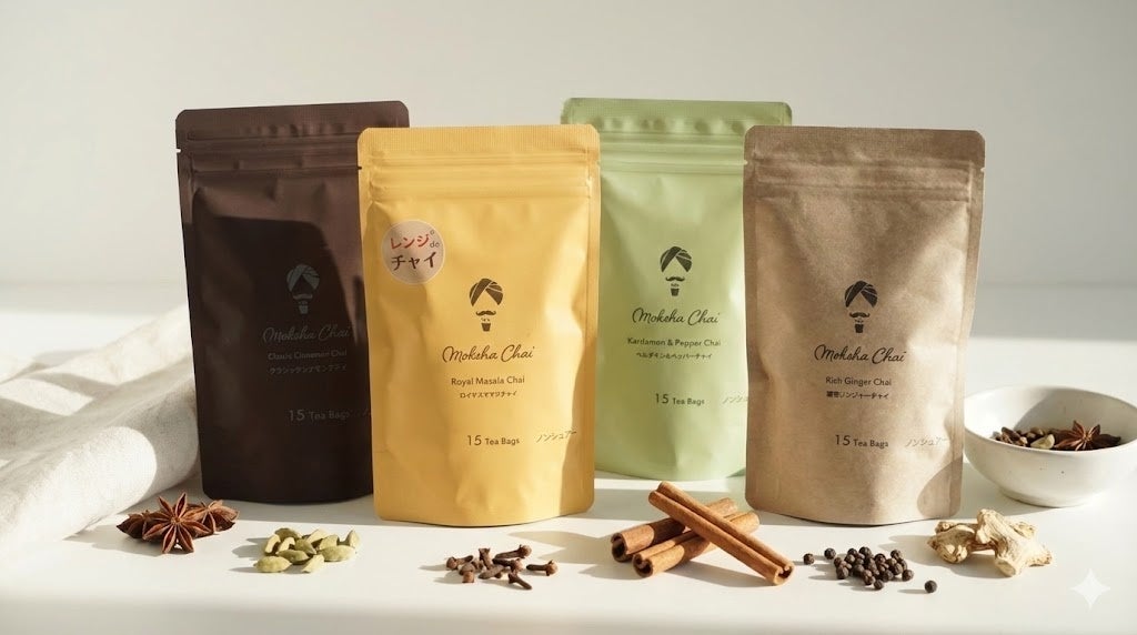 チャイ専門店 モクシャチャイ(店舗:東京都目黒区、運営会社 The Moksha Japan 株式会社 本社:東京都町田市) は、2026年の新春に向けた 「福袋2026」全5種(A~E) の販売を開始しました。ティーバッグ派・煮出し派・お菓子好き・大容量希望の方まで、幅広いニーズに応える内容となっており、今年は 最大50%OFF の特別価格で提供いたします。一年の締めくくりに、スパイス香る“ほっとする時間”をご自宅へ。