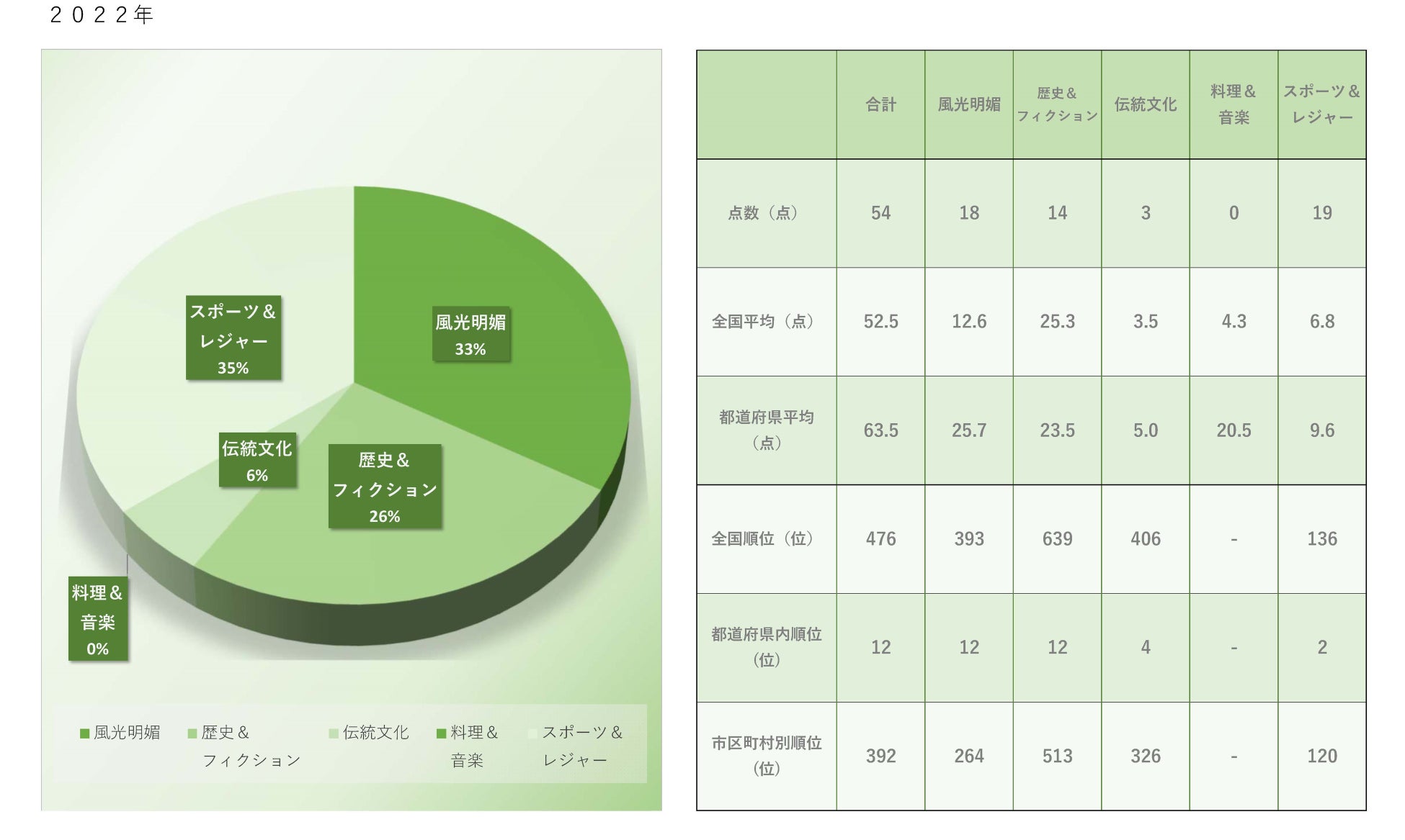料理&音楽のカテゴリーでは会津若松市(総合123位)が全国22位となっています。この誘客要素には郷土料理や特産・名産品、酒蔵やワイナリーに加え、ご当地グルメなども含まれています。