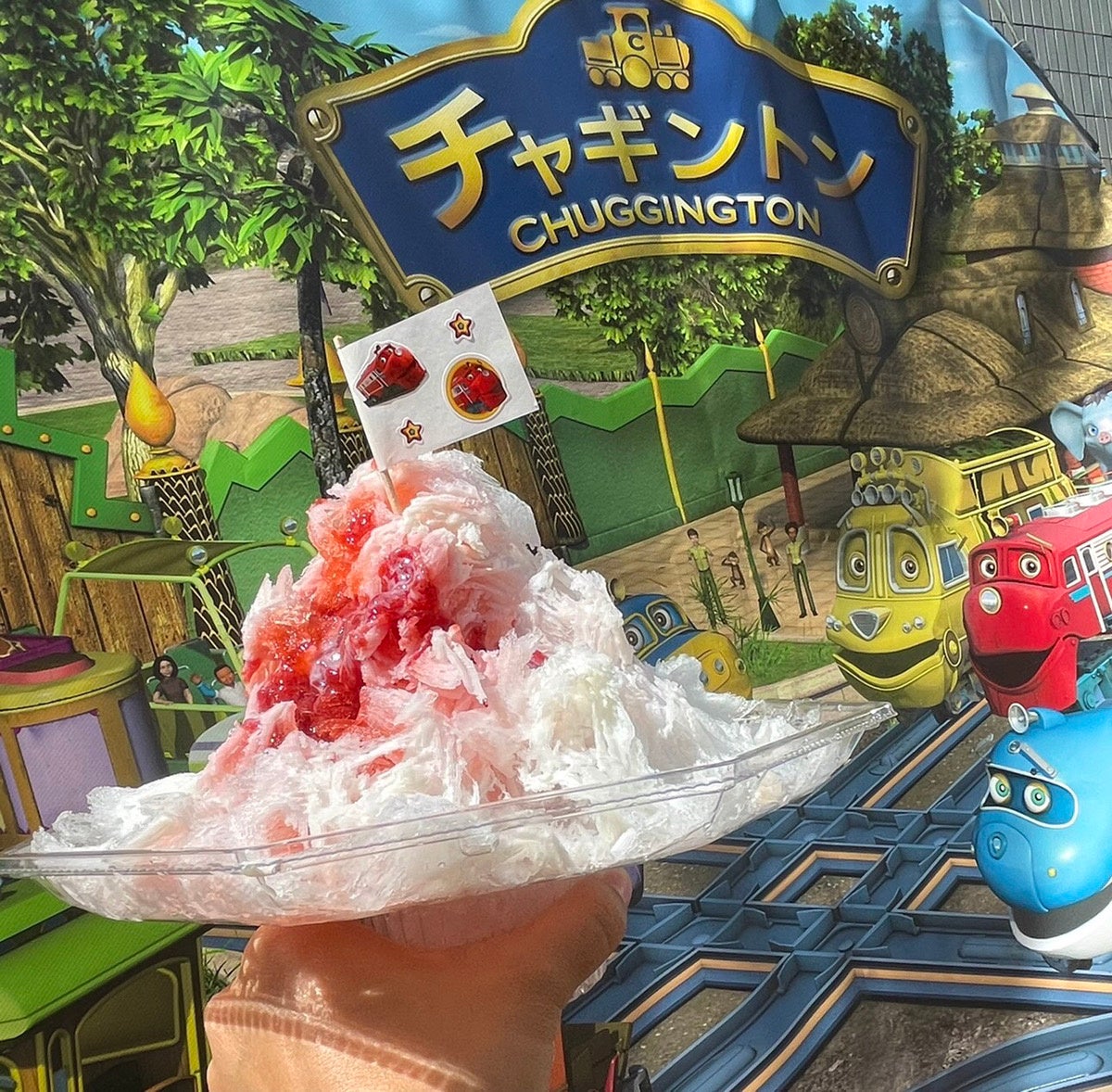 搭載された大型LEDビジョンでアニメ本編やタレントのミュージック映像を映し、コラボメニューのかき氷をメインに販売されました。
