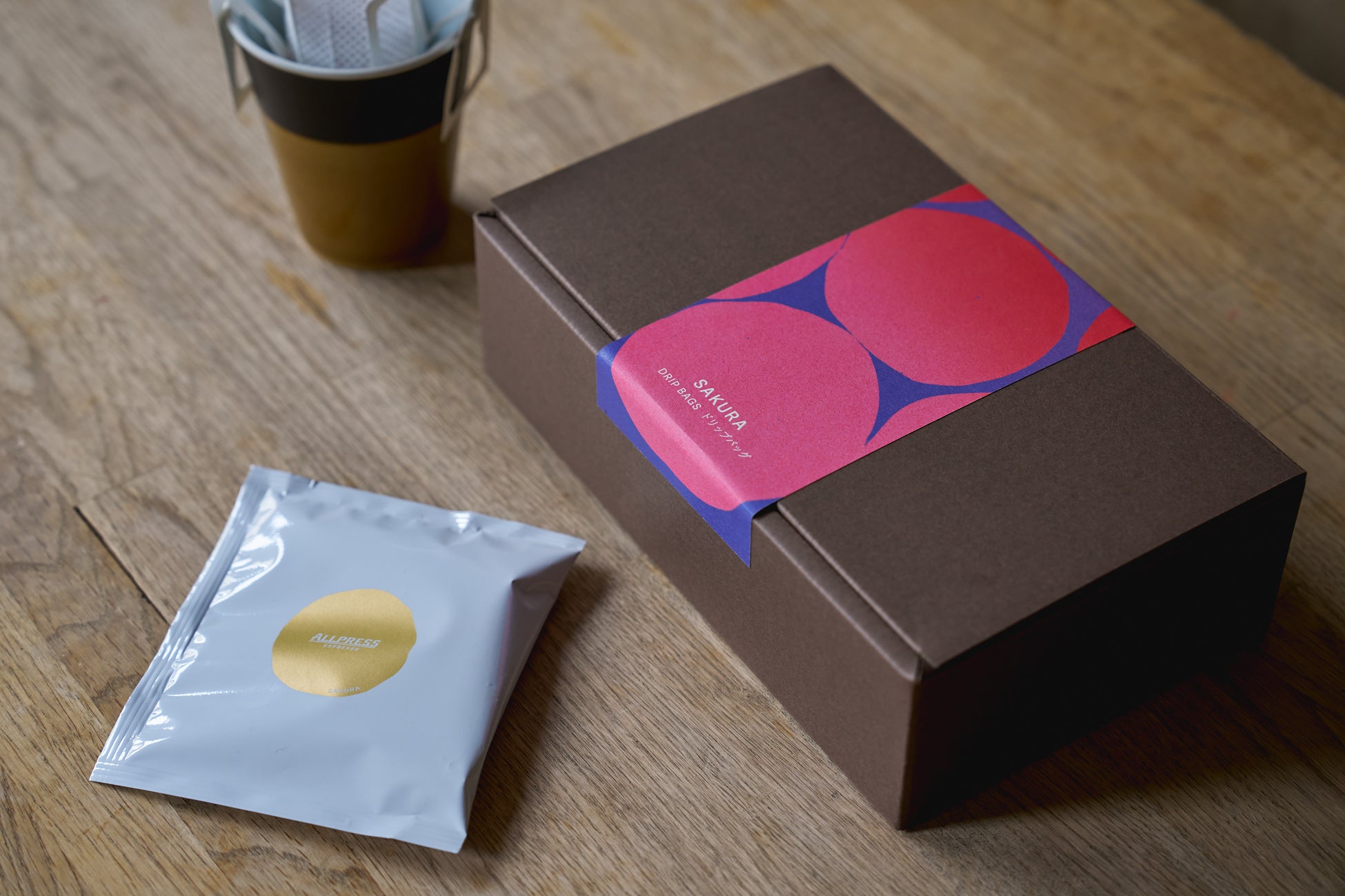 SAKURAの販売に合わせて数量限定のドリップバッグも登場。お湯を注ぐだけで簡単にSAKURAを楽しむことができるこのドリップバッグは、ご自宅やオフィス、アウトドアはもちろん、出会いと別れの季節でもあるこの時期、お世話になった方へ贈るプレゼントにもぴったりです。オールプレス・エスプレッソ 東京ロースタリー&カフェ、オールプレス・エスプレッソ 虎ノ門カフェ、オンラインストアでは、ギフト用のパッケージもご用意しています。