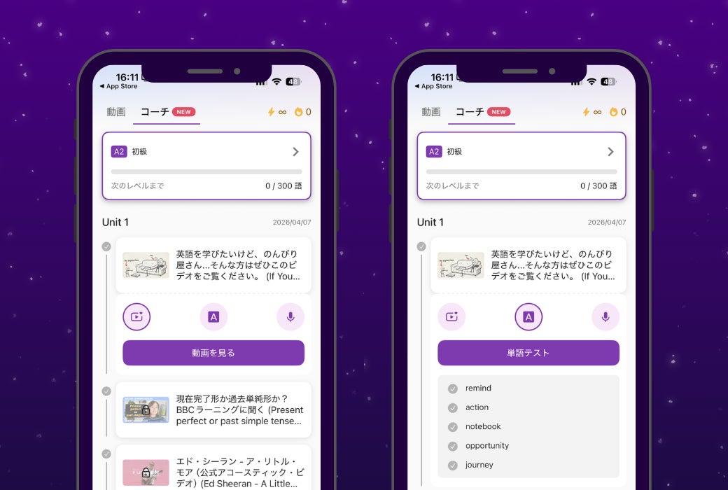 AIによる発音分析・動画の要点解説・単語習得率の管理など、これまでも多彩なAI機能を提供してきましたが、今回の新機能により、一人ひとりに最適化された学習体験をさらに深化させました。