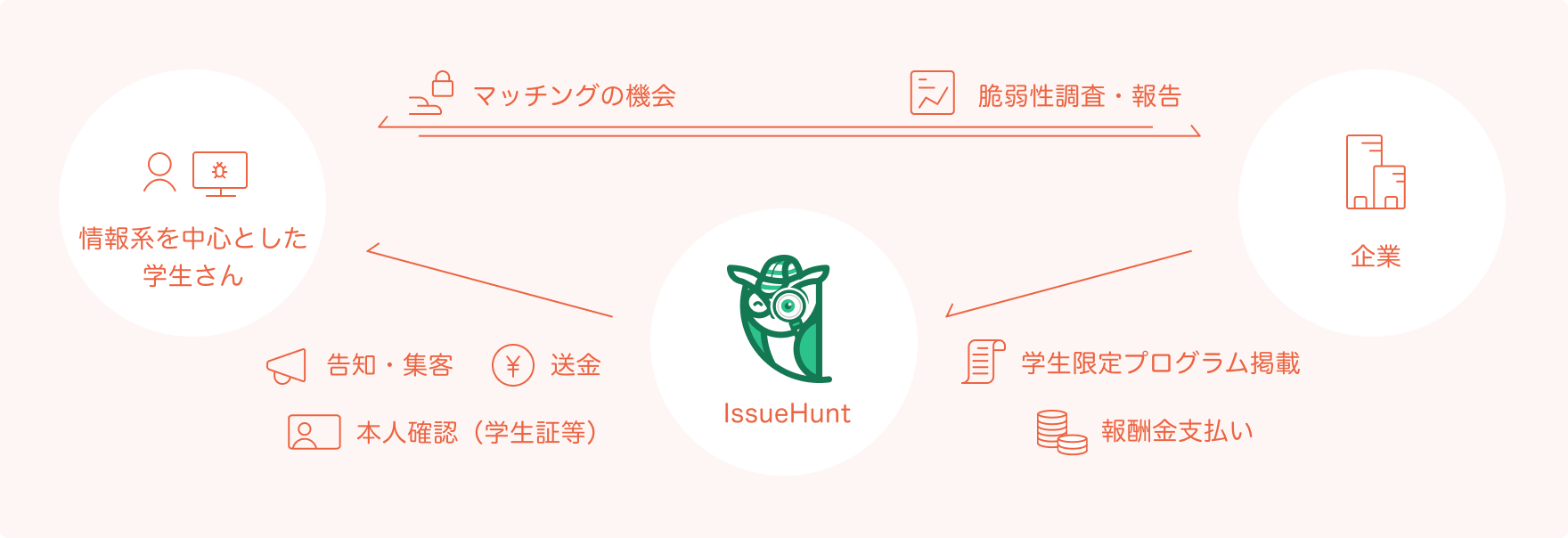 参加企業各社より、⾃社製品を対象とし、学⽣だけが参加出来るバグバウンティプログラムを、イベン ト期間中(2023年8⽉9⽇〜2023年8⽉31⽇)ご提供頂きます。 事前応募頂いた学⽣の皆様は、対象製品に対して脆弱性診断を⾏うことができ、脆弱性を発⾒した場合 、企業より賞⾦を受け取ることができます。 また、希望する学⽣の⽅には、イベント終了後に参加企業とのマッチングの機会の提供も⾏います。 イベント特設ページ:https://issuehunt.jp/events/2023/89summer