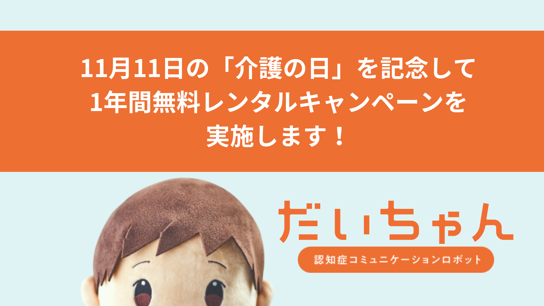 11月11日「介護の日」を記念して、認知症コミュニケーションロボット「だいちゃん」の1年間無料レンタルキャンペーンを開始! 1ヶ月無料お試しも実施中。