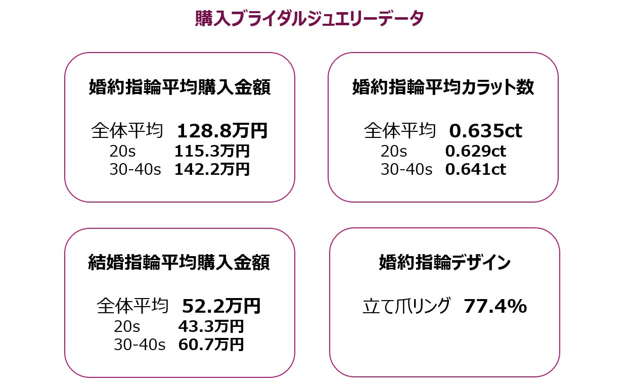 続いて調査では高感度花嫁の購入ブライダルジュエリーのデザイン、価格帯やカラット数も聴取した。