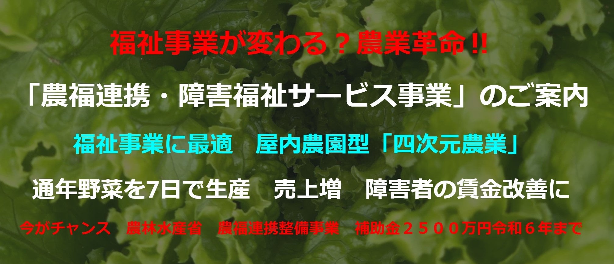 農業革命! 福祉事業に最適な 世界初‼ 屋内農園型「四次元農業」