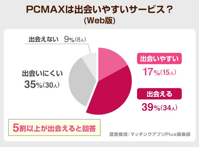 Web版のPCMAXを利用している56%が出会いやすい、もしくは出会えると回答しています。