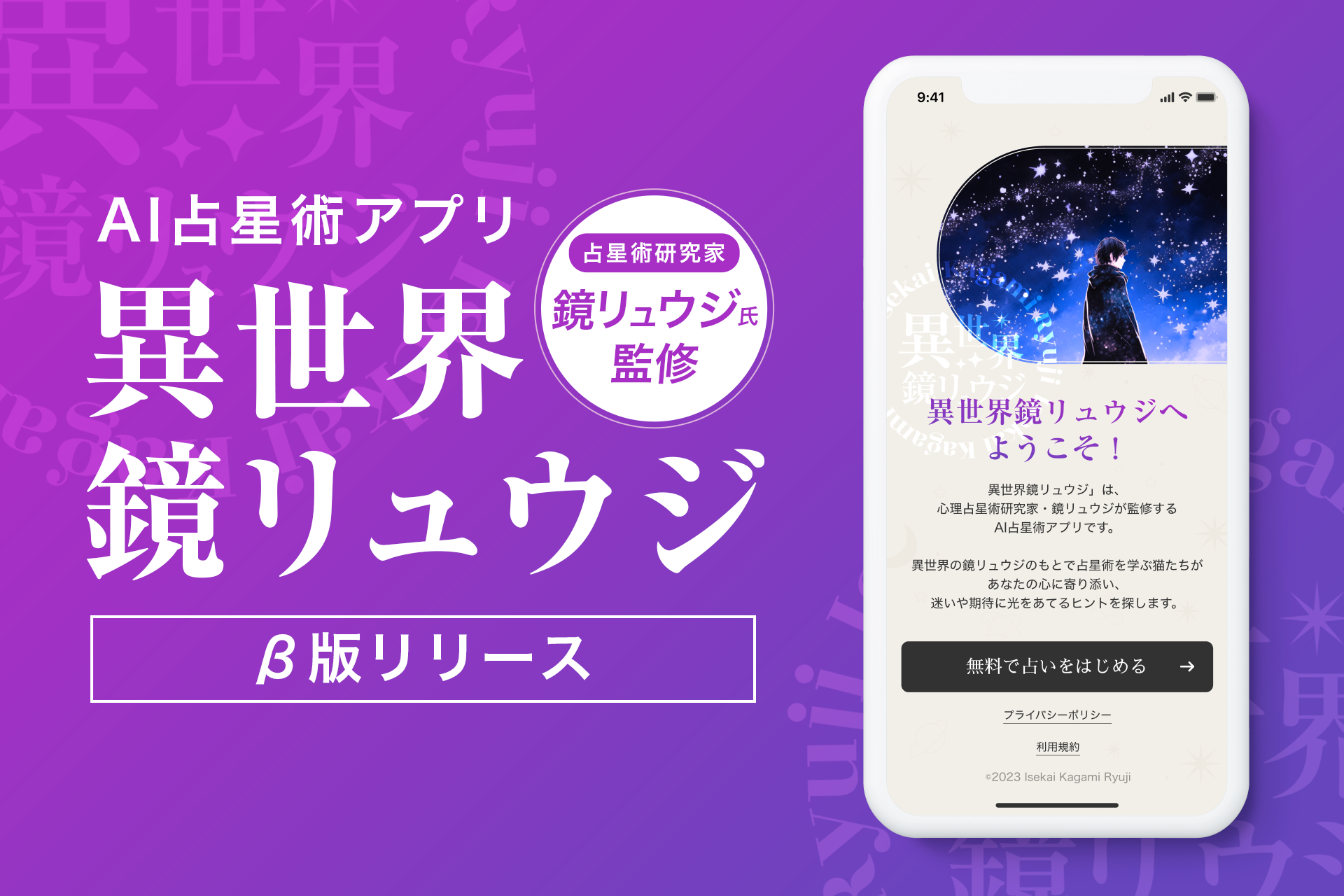 【鏡リュウジ監修】メンヘラテクノロジーがAI占星術アプリ『異世界鏡リュウジ』β版を2023年11月13日にリリース