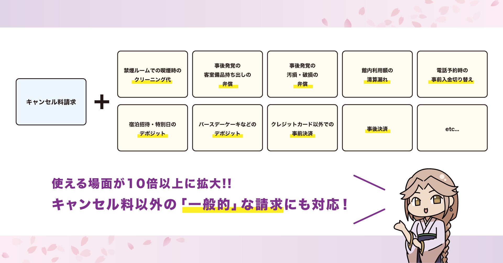 キャンセルチャージのみならず、現場で日々発生する請求業務を広くカバー