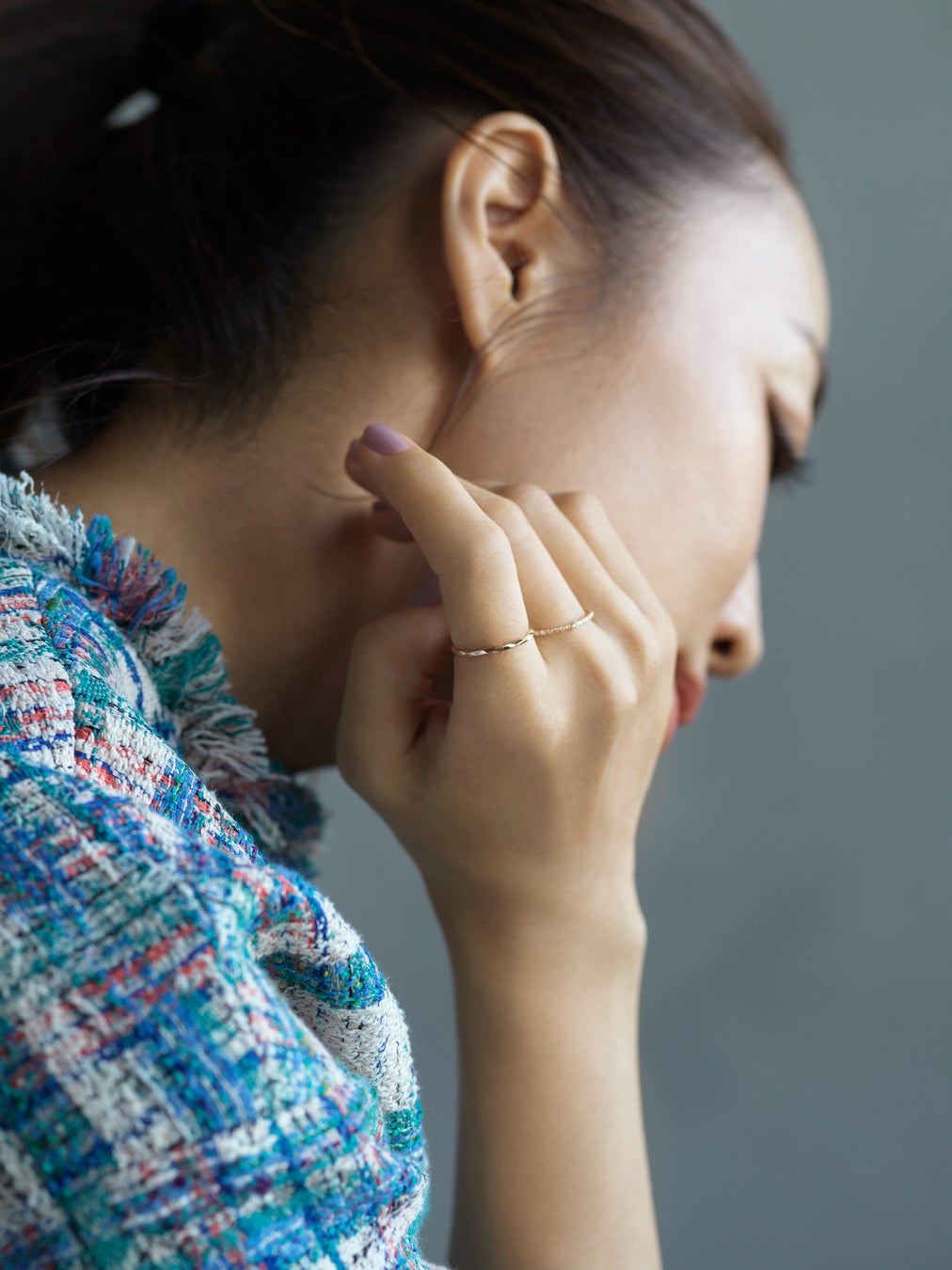ちょっとした仕草でも顔周りにフェミニンなムードを演出してくれます。