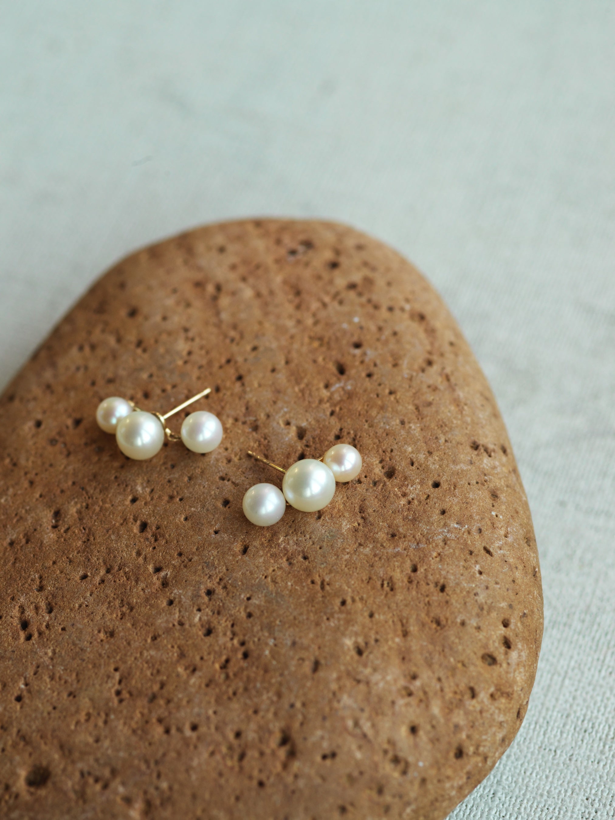 3つの淡水パールが品良く連なり、縦につけると1番下の淡水パールに揺らぎをもたせたデザインです。