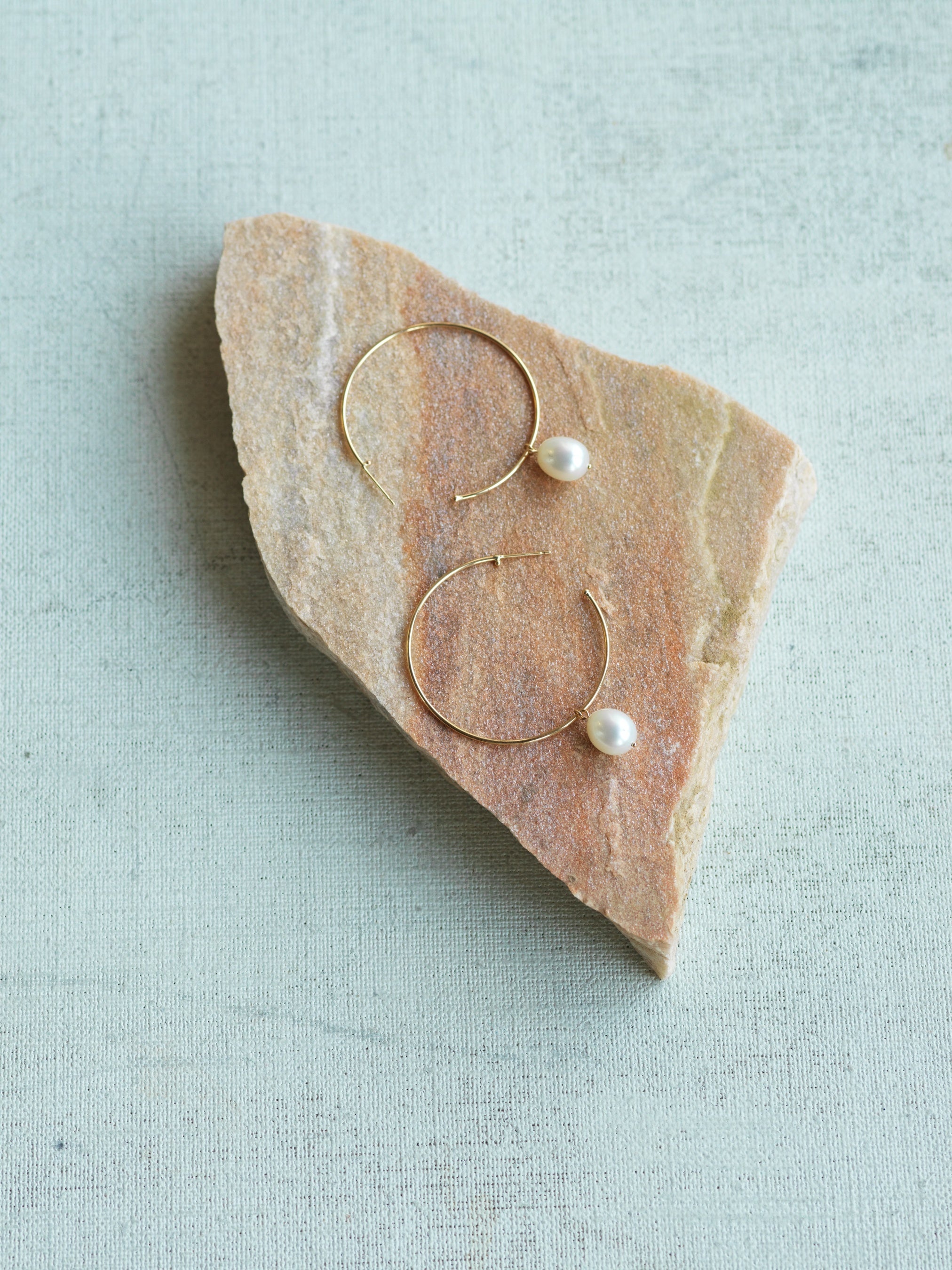 定番のフープピアスにナチュラルなバロックパールの存在感をプラスしたデザインです。
