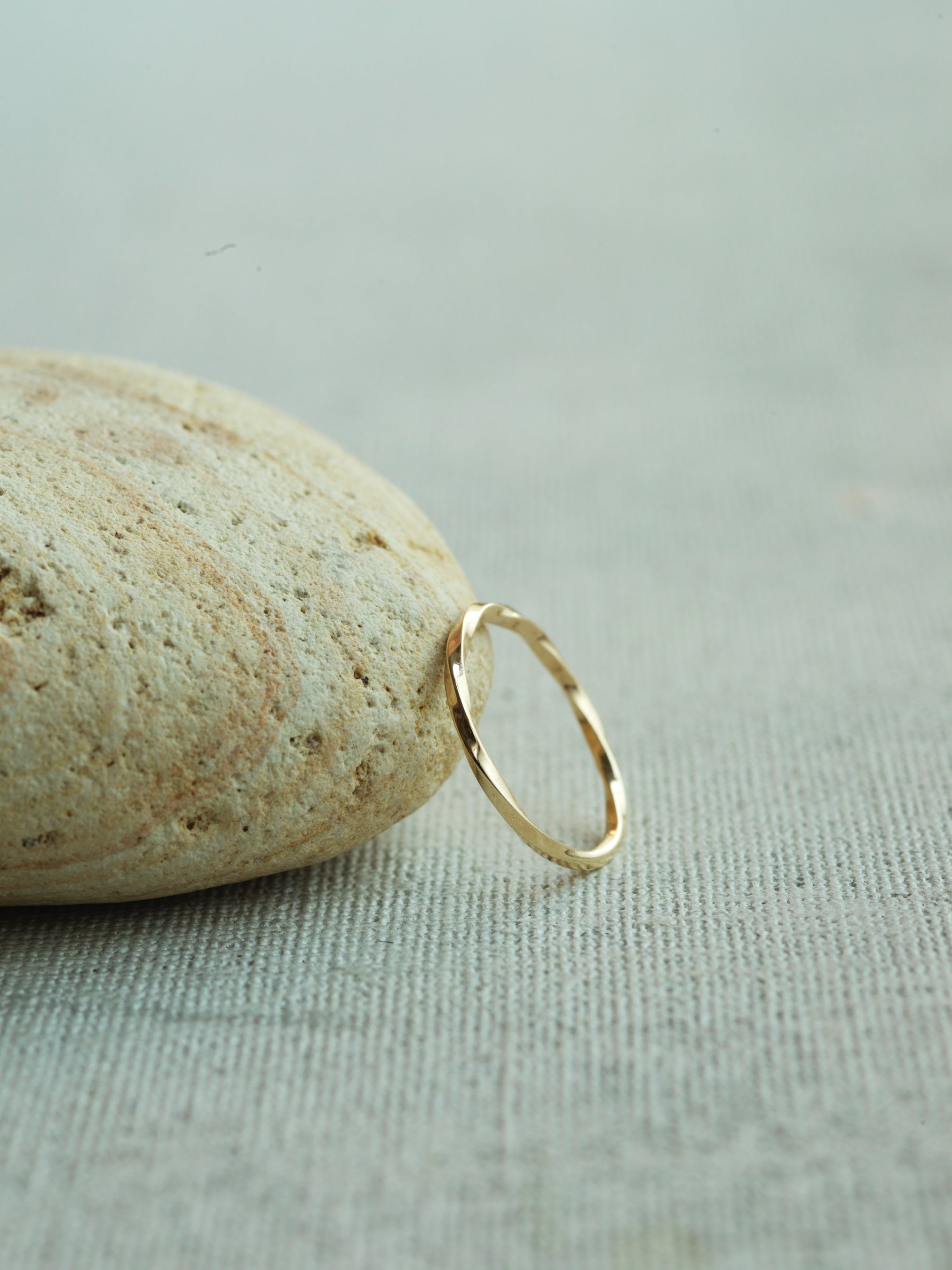 繊細ながら、ややボリューム感ある線をツイストさせることで光を受けるデザイン。