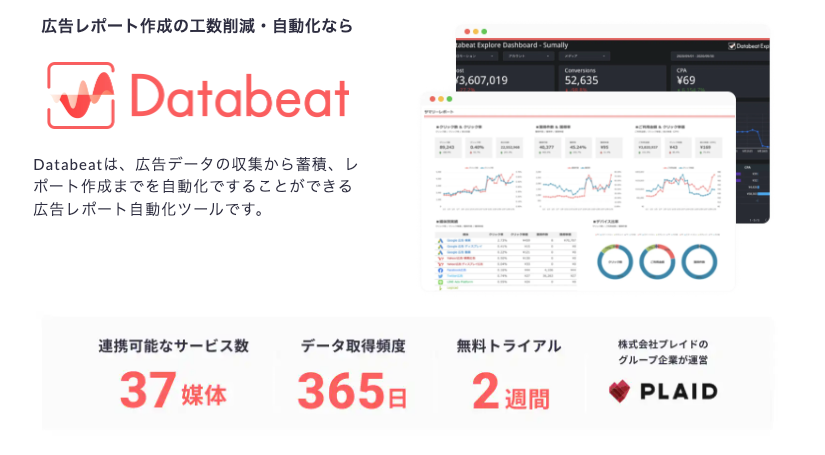 アジト株式会社が開発・提供する広告レポート自動化ツール「Databeat」