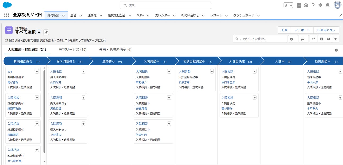 外来や地域連携室の相談に関する情報管理やステータスの管理