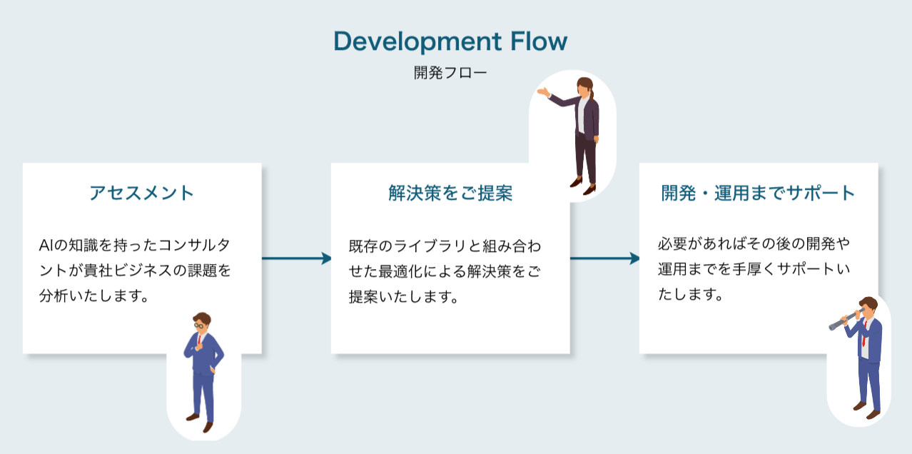 AI開発後の運用技術に関するノウハウを蓄積している企業はそれほど多くありません。弊社ではデプロイ、監視、更新の側面にも注力し、お客様のシステムに合わせた最適なAIモデルのご提案、更新、組み込みまで行うSI領域にも力を入れています。
