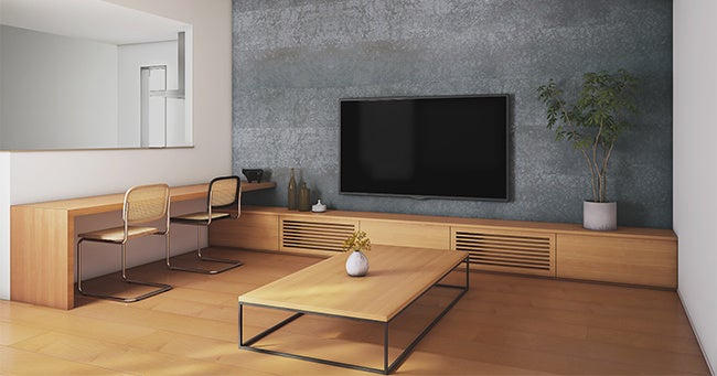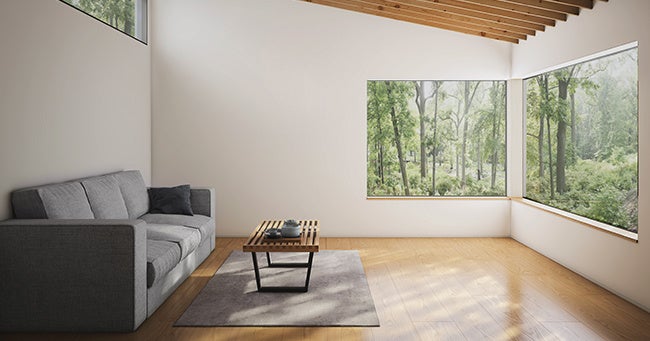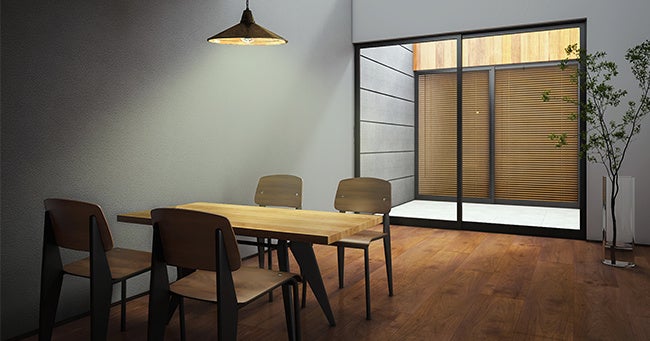 フローリングは、「幅」や「長さ」の違いで目地や木目の数が変わり、 それらによって空間の見え方は大きく変化します。幅が広い商品や 長さが長い商品は、目地や木目の数が少なくなることで、空間に のびやかな広がりと静けさを演出してくれます。