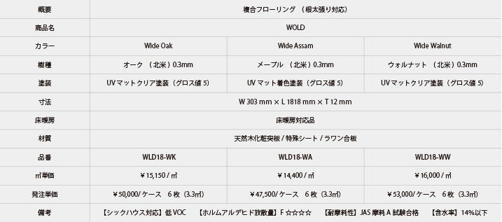 「品番」WLD18-WK 「㎡単価」¥15,150/㎡