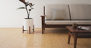UV塗装はフローリングの表面に塗膜を作る塗装方法です。膜があることで耐久性が向上し、傷や汚れに強くなります。そうすることで、ワックスがけなどの頻度も少なくなり、掃除やお手入れがしやすくなります。また、光沢感をできる限り抑え、UV塗装では最もマットなグロス値5を採用することで自然な風合いを残しました。