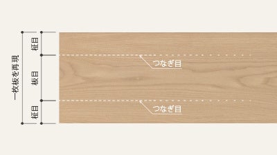 幅が広い商品や 長さが長い商品は、商品は大きな原木から作り出すため、原木調達が難しく高価です。 そこで、WOLDは家具で使われる突板の張り合わせ技術を応用し、 価格を押さえながら一枚板の豊かさを実現しました。