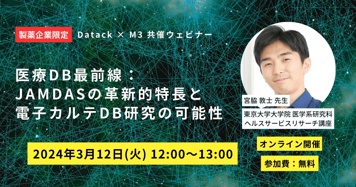 Datack × M3 共催ウェビナー「医療DB最前線:JAMDASの革新的特長と電子カルテDB研究の可能性」