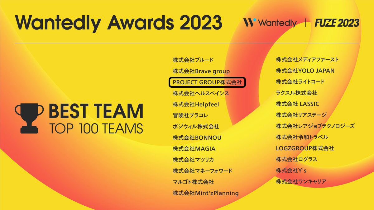PROJECT GROUP株式会社|「Wantedly Awards 2023」Best Team 部門 TOP100 Teamsに選出