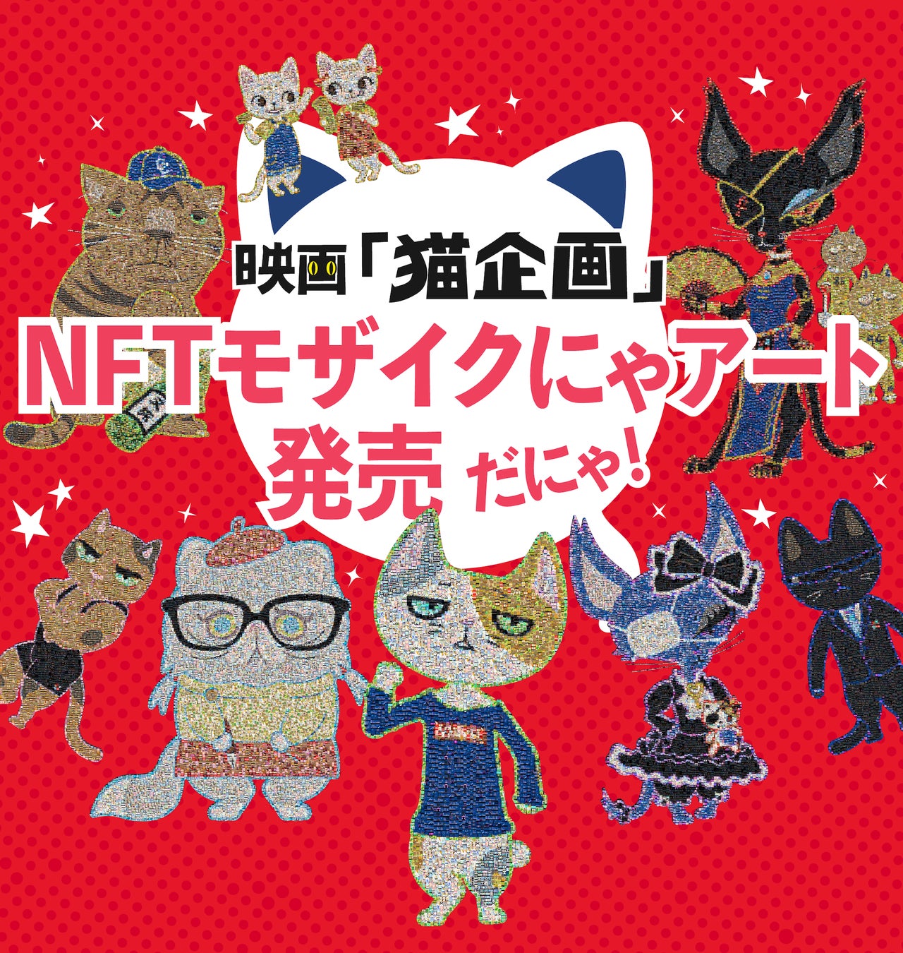 アニメ映画『猫企画』名シーンモザイクにゃアートNFT、2022年9月9日(肉球の日)発売だにゃ!