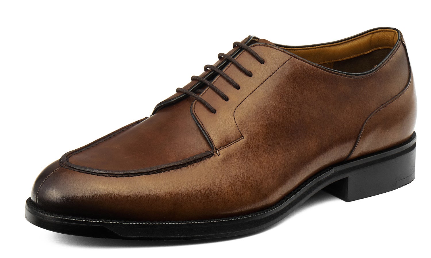 品格を追求し、細部にまでこだわり抜いて仕上げた日本製モデルです。アッパー(甲被)にはきめ細やかなキップレザーを、裏材には明るいキャメルカラーのステアレザーを採用し、クラシックな革靴がもつ気品を持たせています。靴型に合わせてハンマーで叩き込みを行い、シルエットがきれいにあらわれるようツヤの出し方を工夫するなど、一つひとつの工程に手間と時間をかけて美しいフォルムを追求しました。