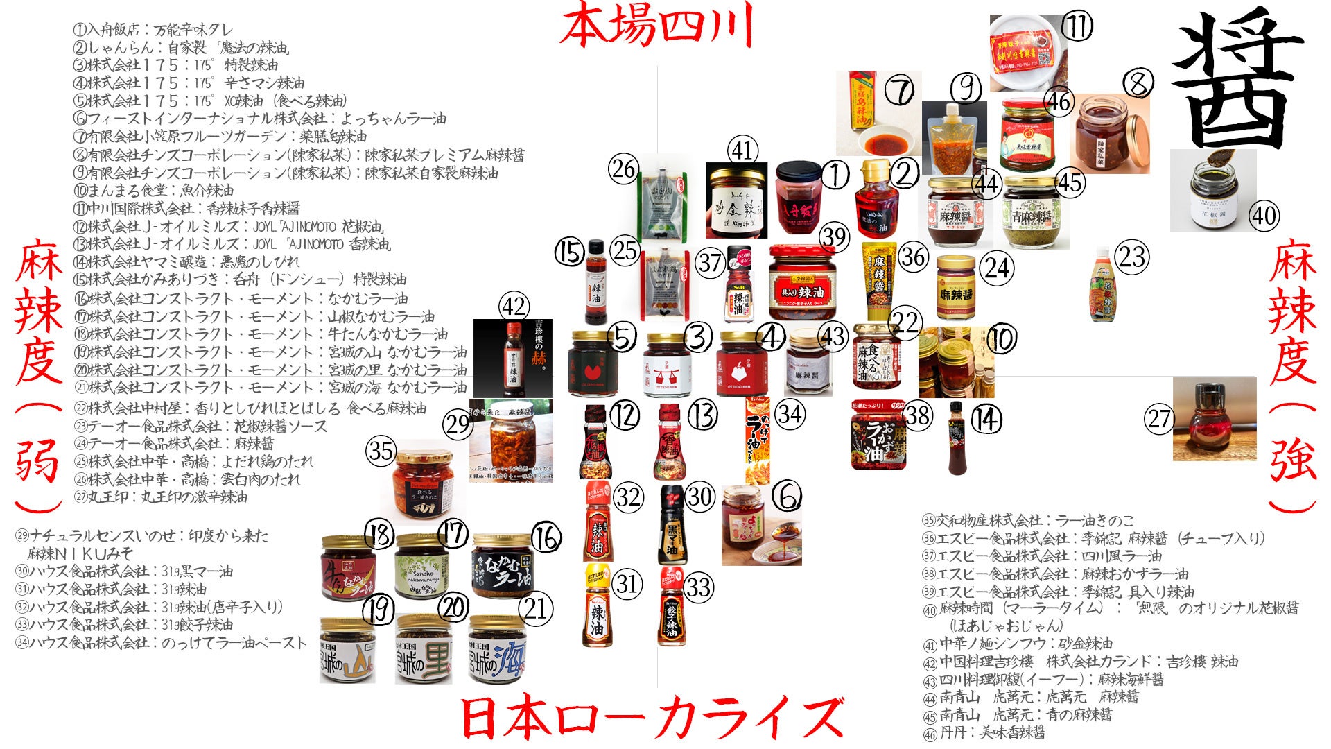 日本全国から120個の麻辣商品が集結!麺23個、ラー油46個、火鍋18個、麻婆豆腐22個、お菓子11個の商品がエントリー。すべて実食し、審査をした結果がこちら!