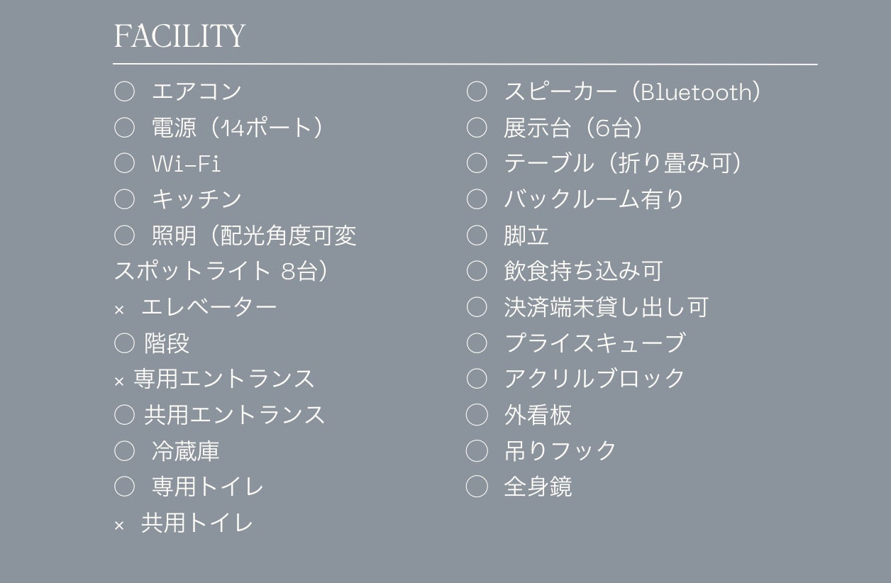 当ギャラリー同様の立地やスペースの場合、貸し出し料金は安くても1日2万以上となりますが、当ギャラリーでは相場の半額以下と格安設定です。安いからと、それなりのスペースというわけではなく、高額なレンタルスペースにも引けを取らない空間でありメリットも豊富なスペースです。