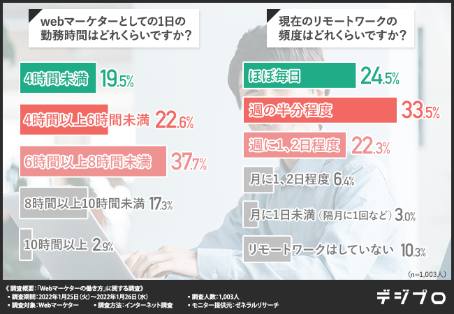 そこで今回、累計受講者数No.1(※)のWebマーケティングスクール『デジプロ』(https://degipro.com)を運営する株式会社Hagakureは、Webマーケターを対象に、「Webマーケターの働き方」に関する調査を実施しました。
