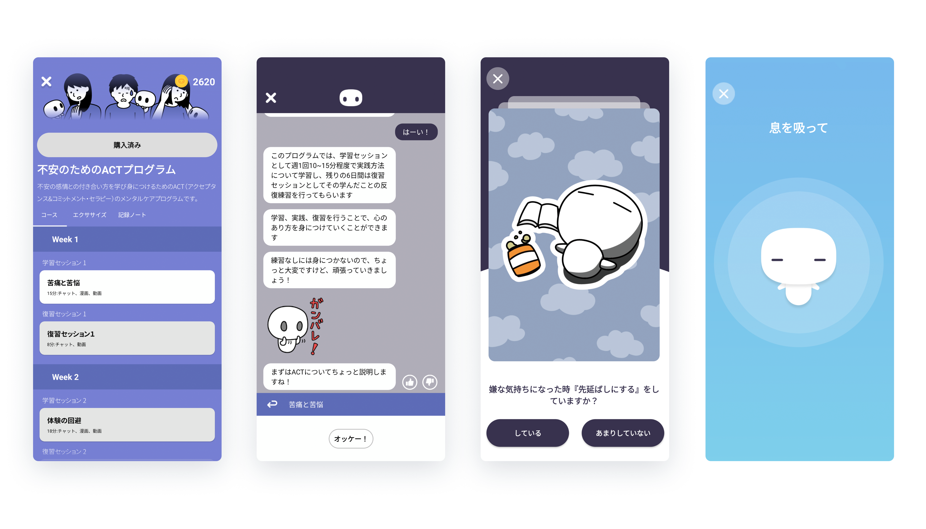 治療用のアプリでは、これまでemolが非医療領域で提供してきた、認知行動療法を自身で行うデジタルプログラムのシステムを活用し、AIチャットボットのシナリオを各疾患毎にカスタマイズし、認知行動療法のレクチャーを行うことができます。