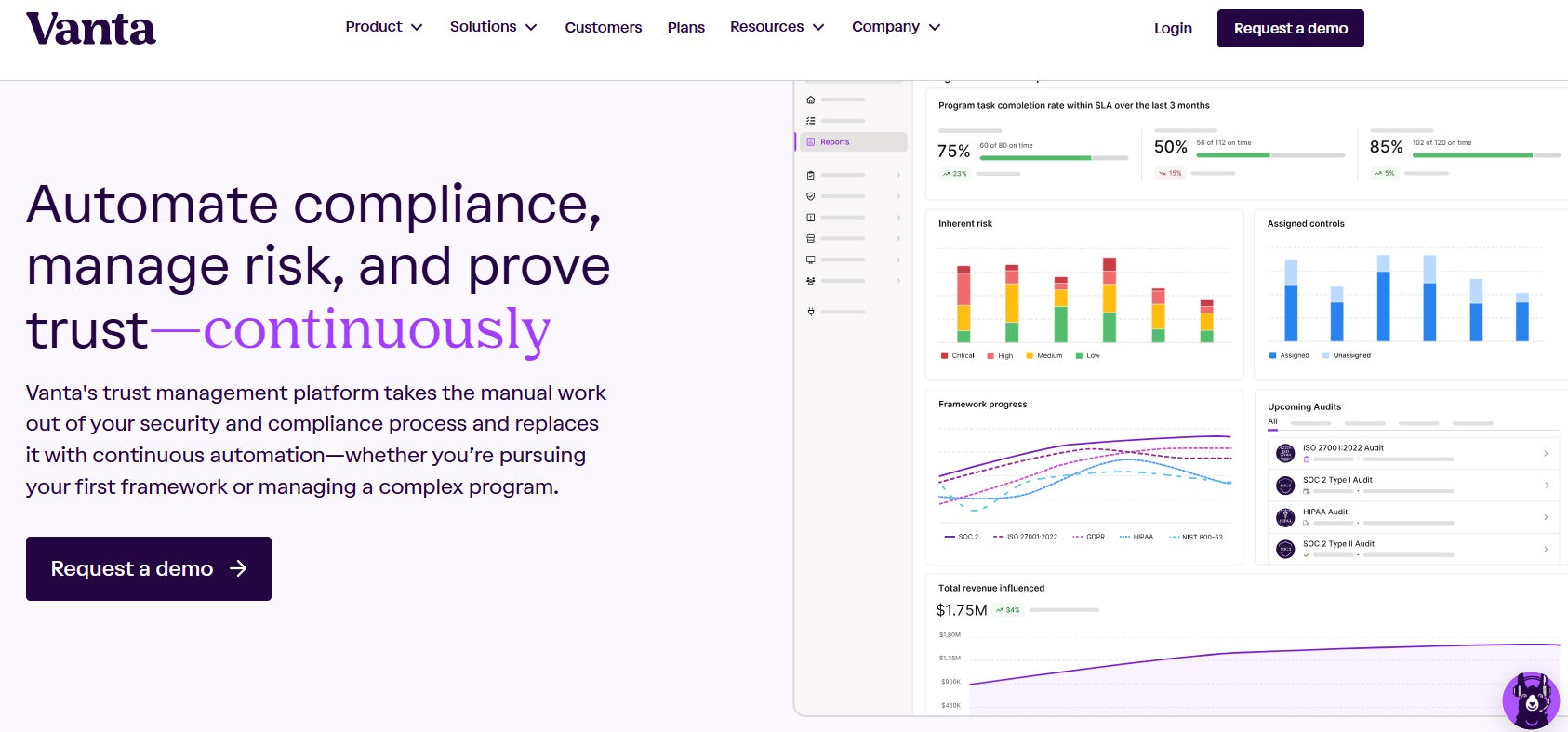 Vantaは、セキュリティおよびコンプライアンスを簡素化・集中管理するリーディング信頼管理プラットフォームです。Atlassian、Chili Piper、Flo Health、Quoraを含む9,000社以上が、Vantaを利用してリアルタイムかつ透明性のある方法で信頼を構築し、維持し、実証しています。