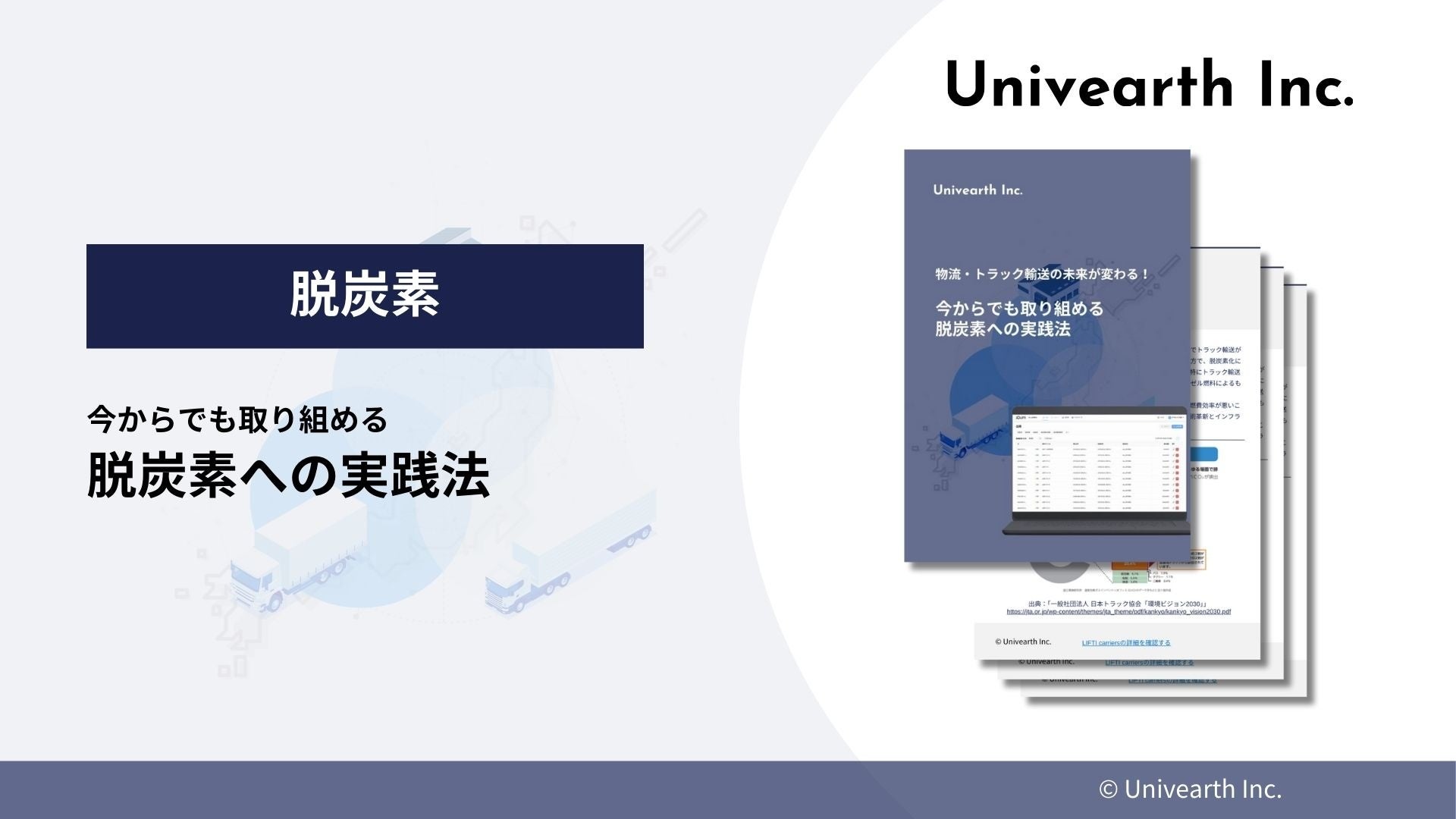 物流DXプラットフォーム『LIFTI』を運営する株式会社Univearth(本社:大阪府大阪市北区、代表取締役:谷口 臨太朗)は、物流・トラック輸送業界における脱炭素化の現状、課題、そして明日から取り組める具体的な実践法を解説したホワイトペーパー「物流・トラック輸送の未来が変わる!今からでも取り組める脱炭素への実践法」を公開したことをお知らせいたします。