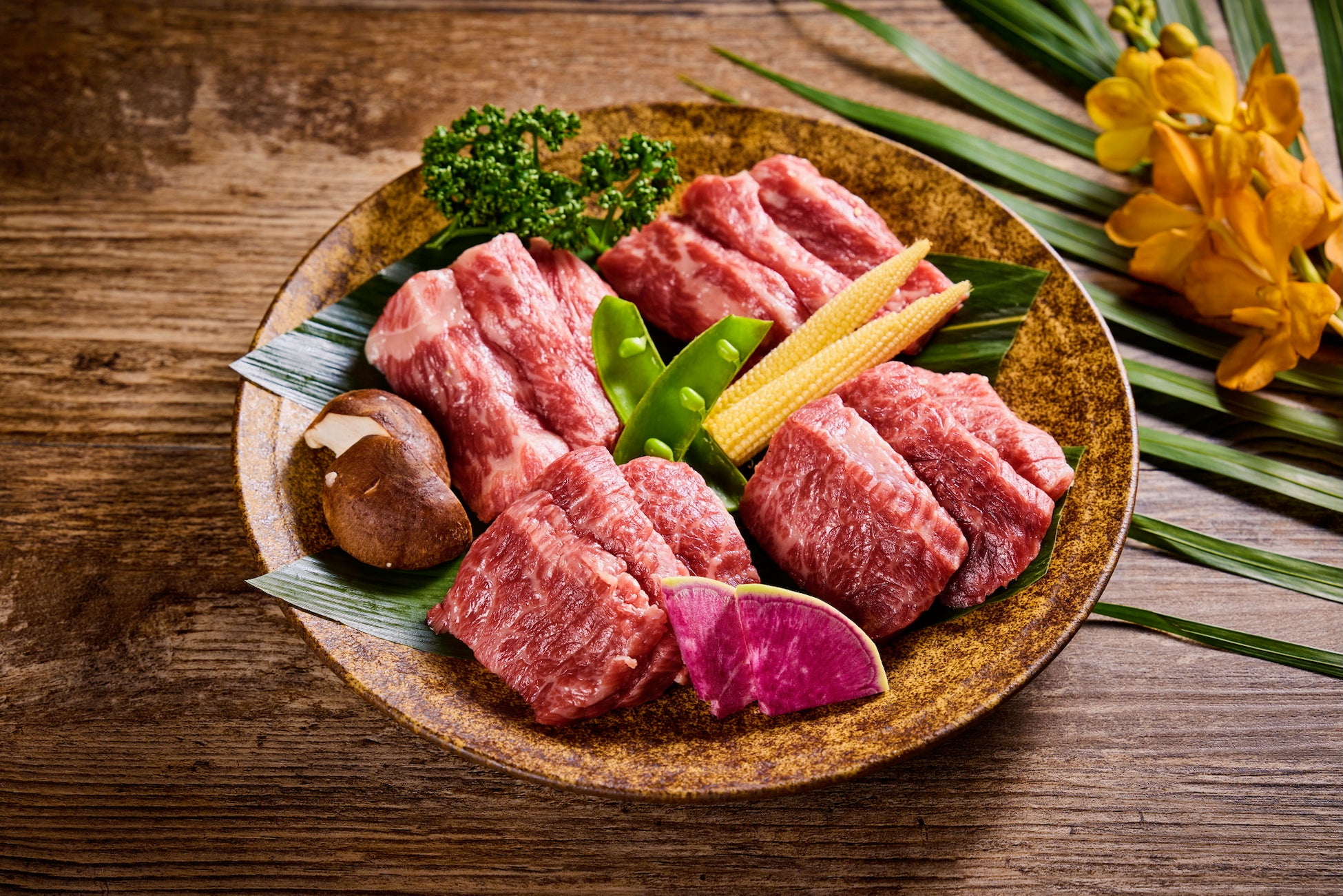 今季は、能登の復興応援の一助となるよう、オプションで「能登応援メニュー」をご用意いたしました。フードでは能登牛をお楽しみいただける「能登応援 能登牛プレート」(2〜3名様分¥8,000)、ドリンクでは「能登応援 能登の銘酒コレクション」として能登の地酒(300ml1本 ¥1,500〜)と能登のワイン(フルボトル1本 ¥6,500〜)をご追加いただけます。