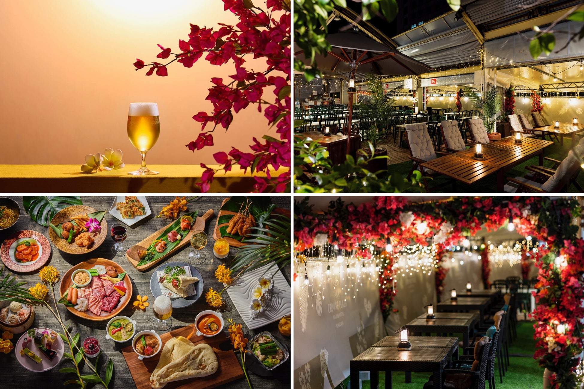 オープンエアの開放感あふれる空間でリゾート気分を満喫できる場所、「期間限定ガーデンレストラン ANAクラウンプラザ ビアテラス」。大人数でも少人数でも、飲む方も飲まない方も、それぞれ思い思いのスタイルで「ココロときめく」特別なひとときをお過ごしください。