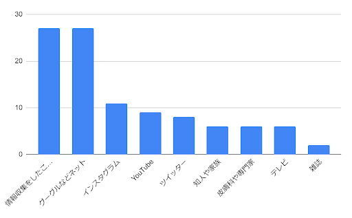 一方でネットでの検索(グーグルなど)によって情報収集をする方も多いことが明らかになりました。