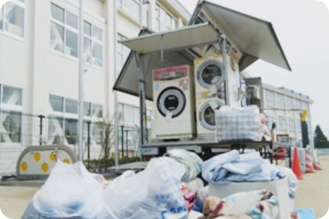 当社ではコインランドリー事業における「災害対策コインランドリー」の推進及び、真空包装機事業における「衣類備蓄」および「食料備蓄」の推進活動を行なっております。防災対策といえば、食料備蓄や飲料水、電気などのライフラインに目がいきがちですが、当社はボランティア活動を通じ、被災地の声として「着替え・洗濯に関する需要」が非常に高かったことを実感しており、災害時におけるコインランドリー利用の認知拡大を進めております。